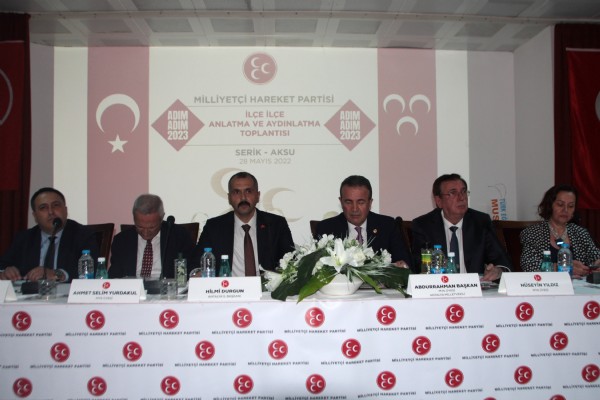 MHP Antalya İl Başkanı Hilmi Durgun, buradaki konuşmasında, Adım Adım 2023, ilçe ilçe anlatma ve aydınlatma toplantılarının ülke genelinde yapıldığını söyledi.