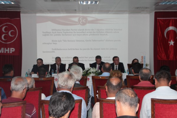 Serik Belediyesi salonunda yapılan toplantıya MHP Antalya İl Başkanı Hilmi Durgun, Antalya Milletvekili Abdurrahman Başkan, MHP MYK üyeleri Hüseyin Yıldız, Ahmet Selim Yurdakul, Mustafa Aksoy ve İlknur Fidan, Serik İlçe Başkanı Osman Üstünmet, Aksu İlçe Başkanı Hasan Efe Üstün, sivil toplum temsilcileri ve muhtarlar katıldı.
