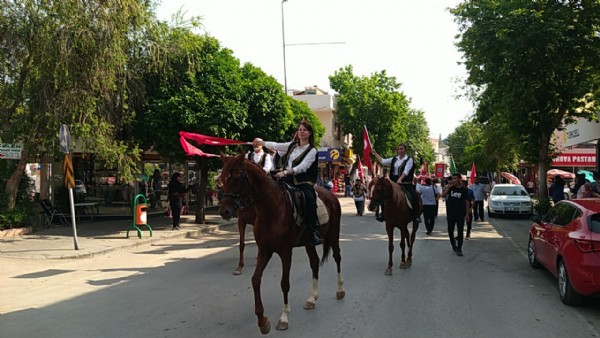 Aralarında atlı vatandaşların da olduğu katılımcılar, mehteran takımı eşliğinde yürüdü.