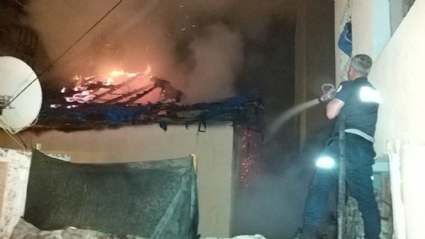 Ferit Can K'ye ait Ulus Mahallesi 181 Sokak'ta müstakil evde henüz bilinmeyen nedenle çıkan yangın, çatı kısmına sıçrayarak büyüdü.