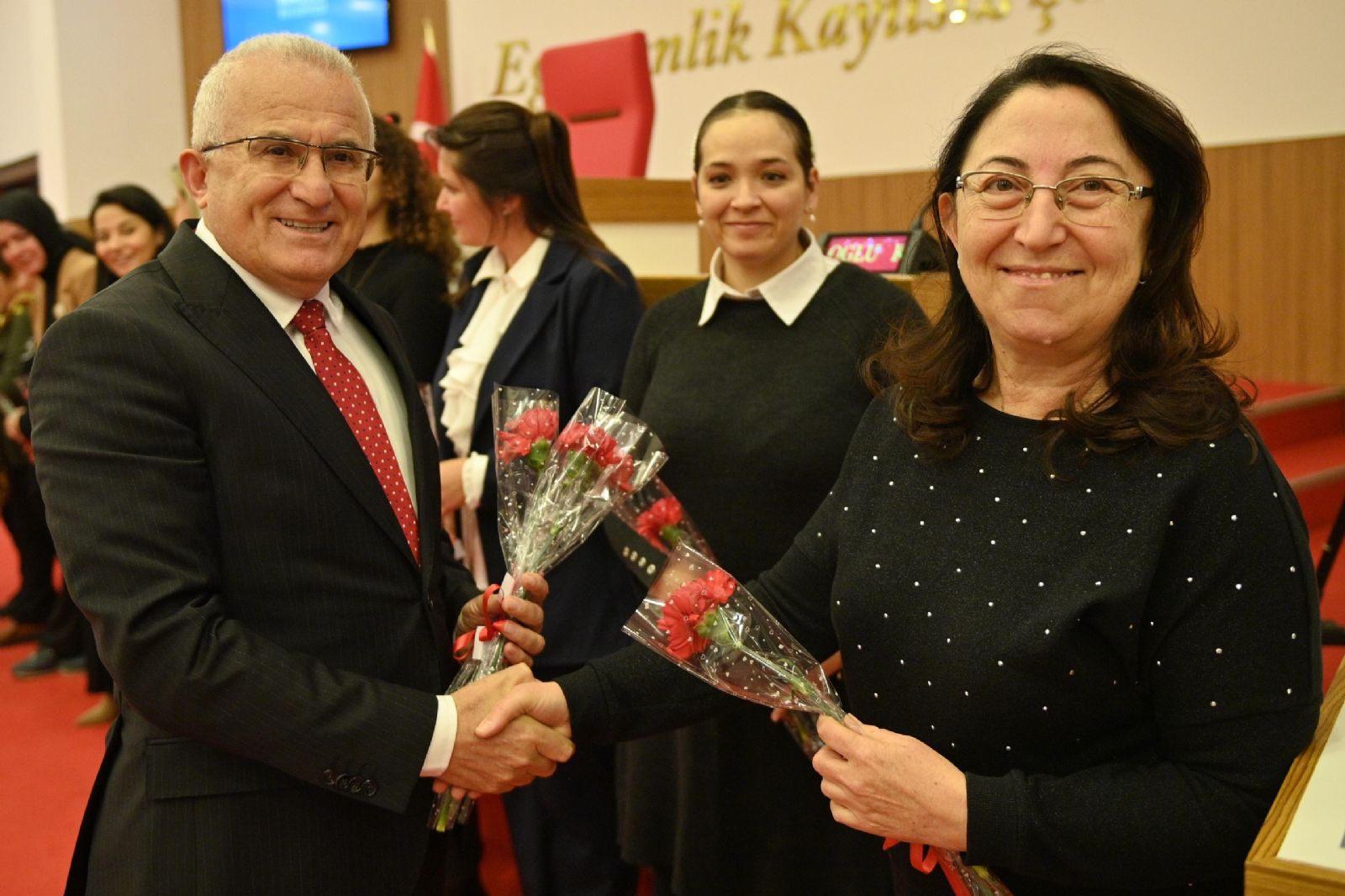 Başkan Avcıoğlu çiçek takdimini siyasi parti temsilcileriyle birlikte yaptı. Kadınların toplumdaki önemli rollerine dikkat çeken Avcıoğlu, bu özel günde kadınların daha fazla takdir edilmesi ve desteklenmesi gerektiğine vurgu yaptı. Kumluca Belediye Başkanı'nın bu nazik davranışı, toplantıya katılanlar tarafından takdirle karşılandı.