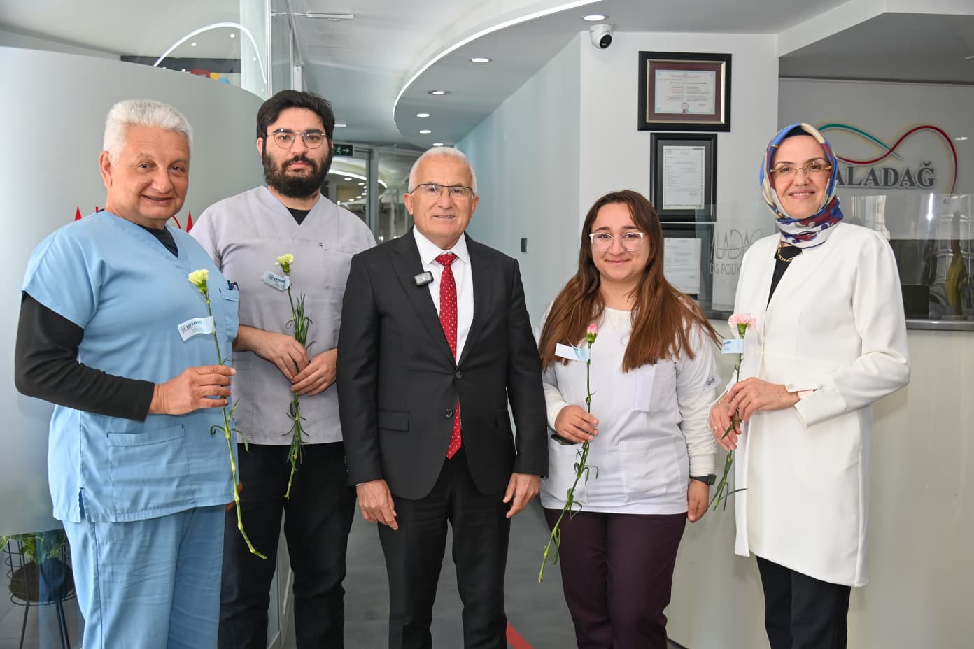 Kumluca Belediye Başkanı Uzm. Dr. Mesut Avcıoğlu, 14 Mart Tıp Bayramı dolayısıyla ilçede görev yapan sağlık çalışanlarını ziyaret ederek çiçek takdiminde bulundu.