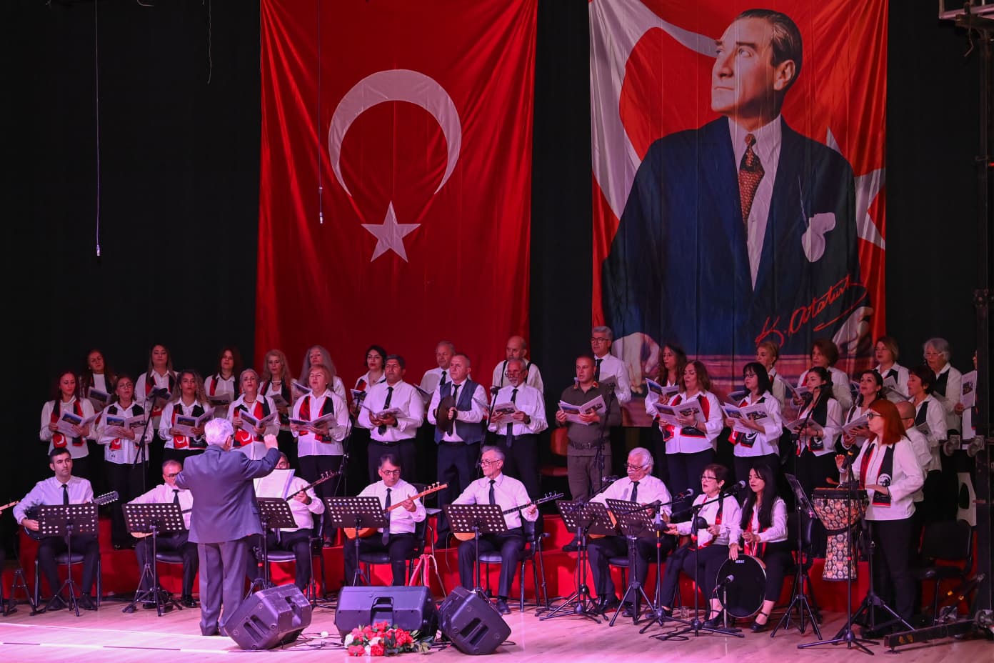 Başkan Avcıoğlu, sahne performanslarından dolayı koro üyelerini tebrik etti. Koro Şefi İbrahim Bilgenoğlu’na günün anısına çiçek takdiminde bulundu.