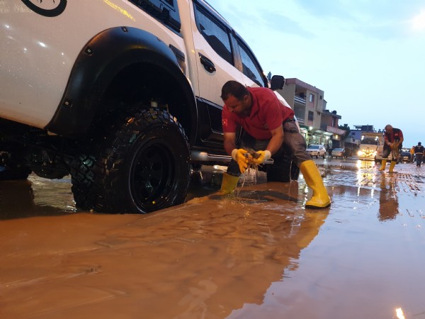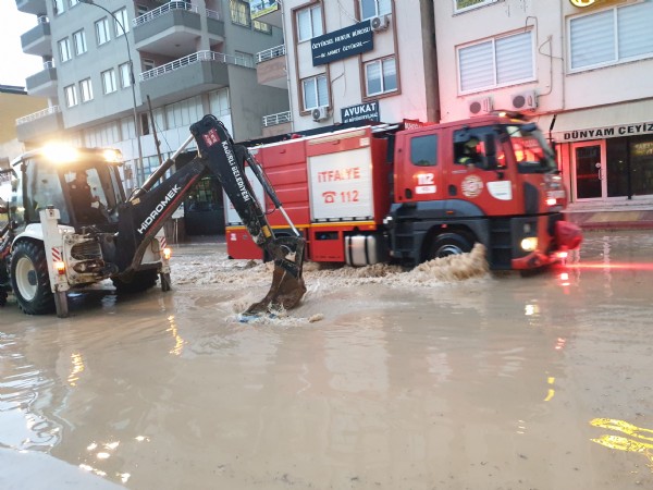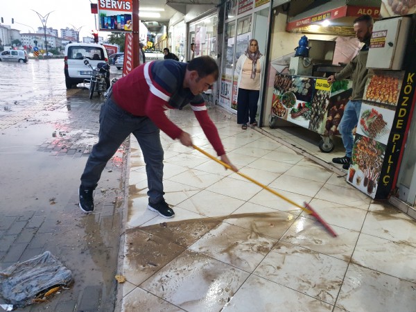Belediye ekipleri, sağanağın yol açtığı olumsuzlukları gidermek için çalışmalarını sürdürüyor.