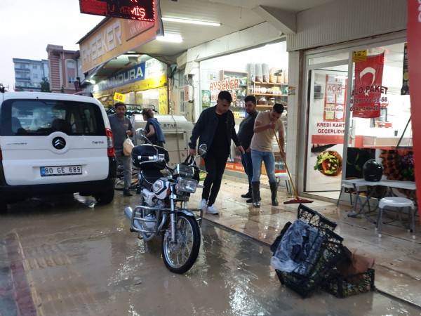 Şiddetli yağış nedeniyle bazı iş yerlerini su bastı.