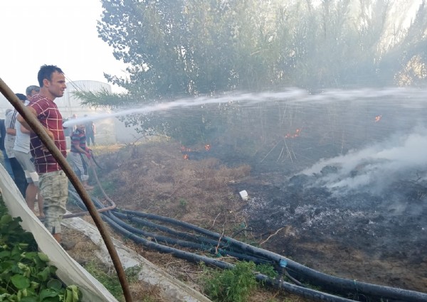 Kadriye Mahallesi Beşgöz Deresi mevkisindeki sazlık alanda henüz belirlenemeyen nedenle yangın başladı. Rüzgarın da etkisiyle kısa sürede yayılan alevler, yakındaki çilek seralarına sıçradı.