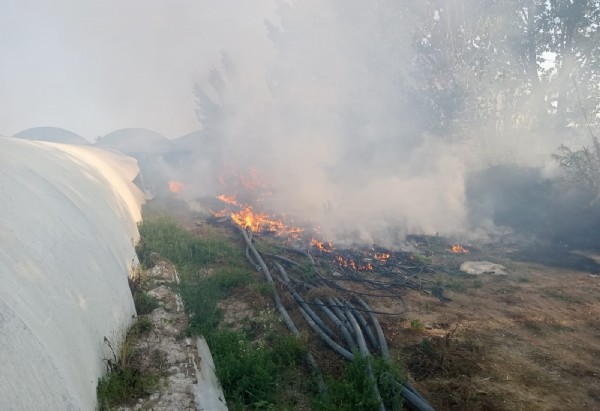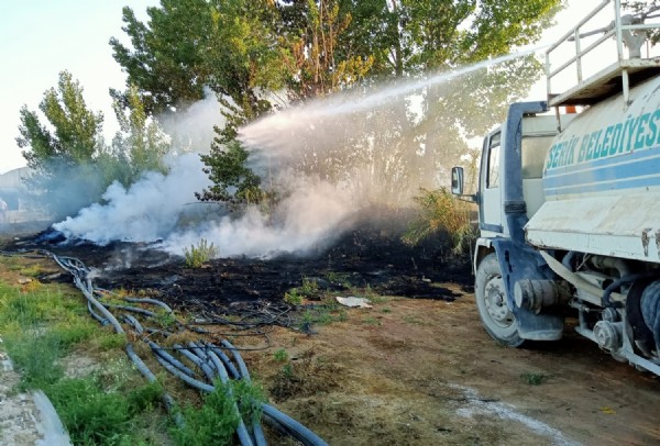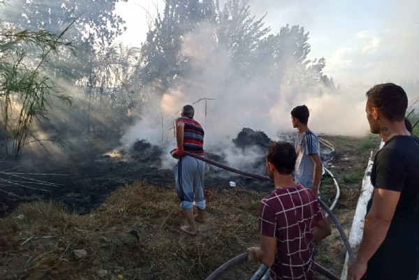 Yangında sazlık alan zarar gördü, iki serada hasar meydana geldi.