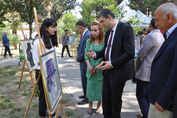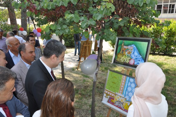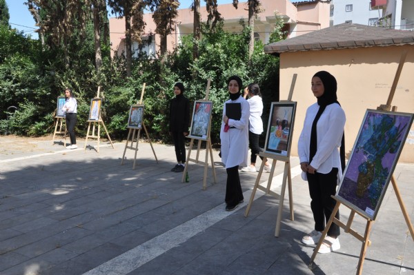 Reyhanlı Belediyesinin destekleriyle Tayfur Sökmen Anadolu Lisesi'nde açılan sergide, öğrenciler tarafından yapılan, yağlı boya ve karakalem çalışmalarından oluşan 40 eser yer alıyor.
