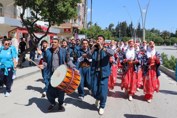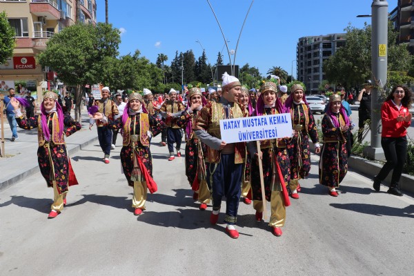HATAY (AA) - Hatay'da Türkiye Üniversite Sporları Federasyonu Başkanlığı tarafından düzenlenen, "19. Üniversiteler Halk Müziği ve Halk Dansları Yarışmaları" kapsamında kortej yürüyüşü gerçekleştirildi.