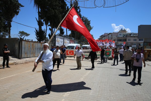 Reyhanlı Belediyesi önünde toplanan ve saldırıda hayatını kaybedenlerin yakınlarının da olduğu grup, 11 Mayıs Şehitler Anıtı'na kadar yürüdü.