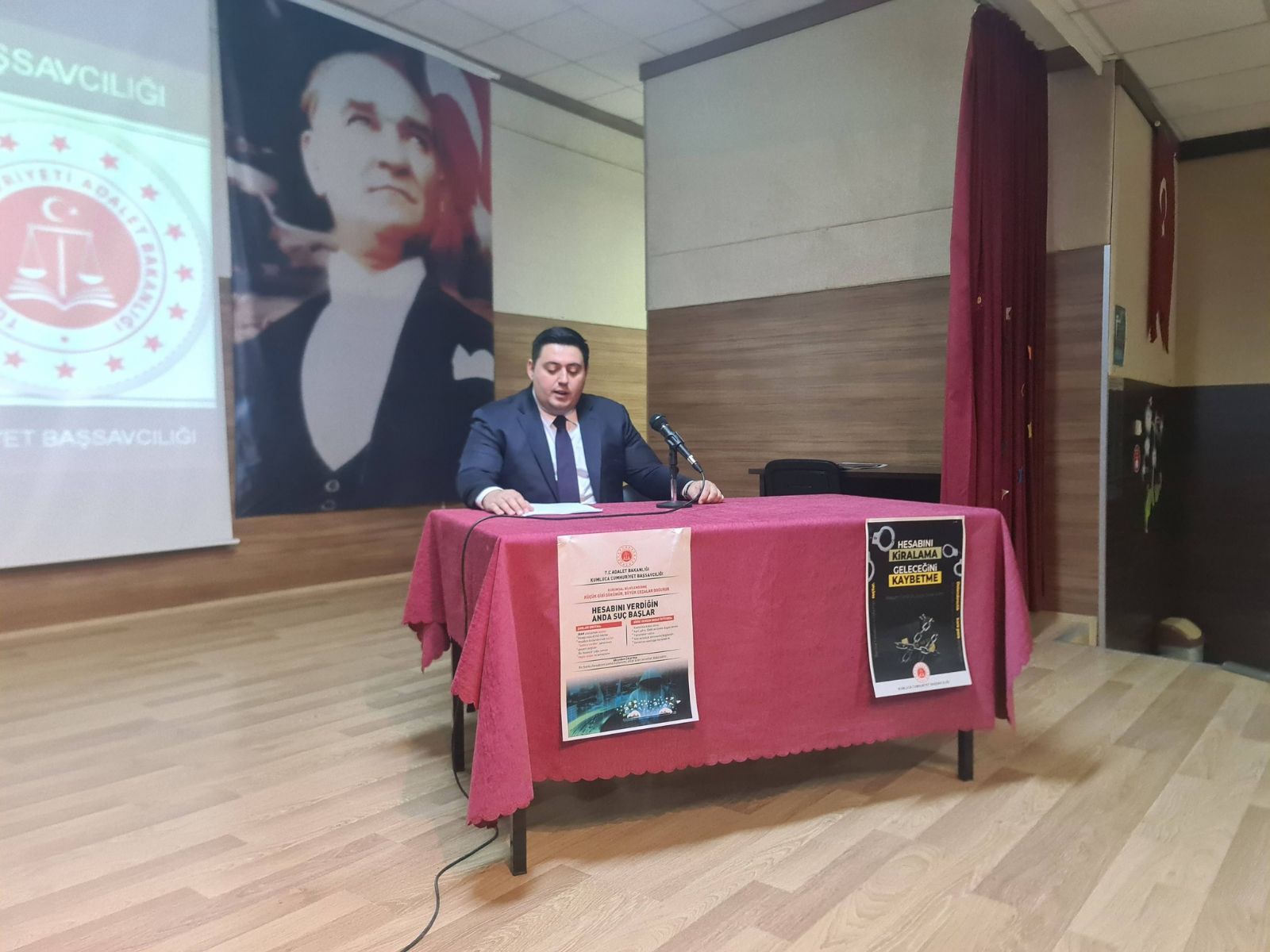 Program sonunda öğrenciler merak ettikleri soruları Başsavcı İlker Çağatay Aydın’a yöneltirken, yetkililer bu tür bilgilendirme çalışmalarının gençleri suçtan korumak adına büyük önem taşıdığını ifade etti..jpg)