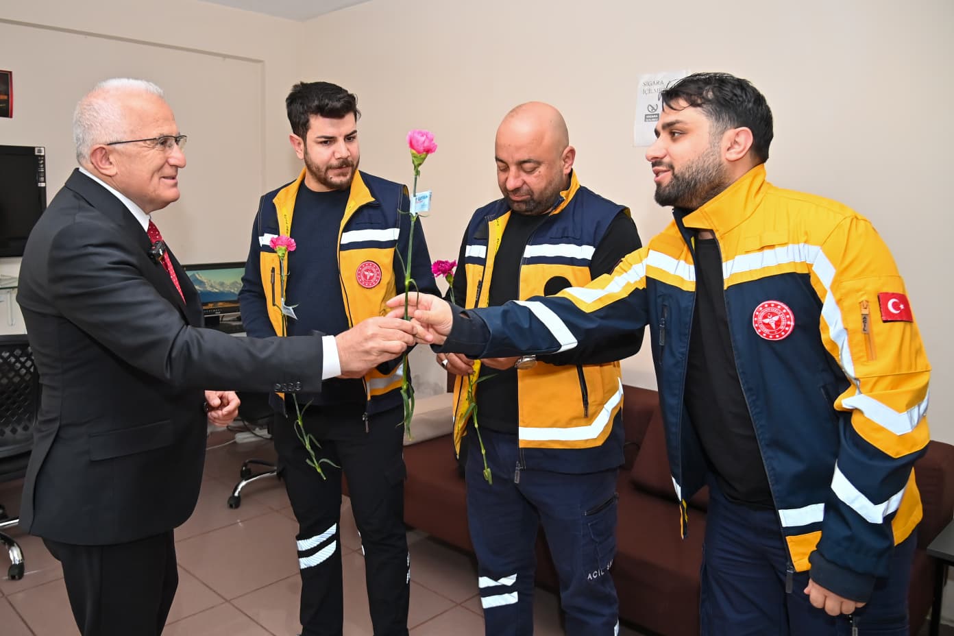 Kumluca Belediye Başkanı Uzm. Dr. Mesut Avcıoğlu, 14 Mart Tıp Bayramı dolayısıyla ilçede görev yapan sağlık çalışanlarını ziyaret ederek çiçek takdiminde bulundu.