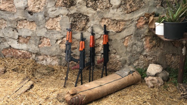 Adresteki bir sandıkta 10 kalaşnikof piyade tüfeği ile 14 mermi ve tarlada da 720 kök Hint keneviri bulundu.