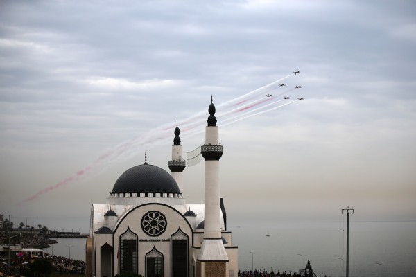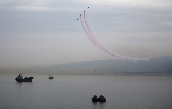 Yaklaşık 20 dakika havada kalan tim, daha sonra kent semalarından ayrıldı.