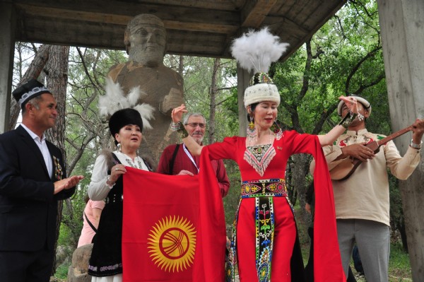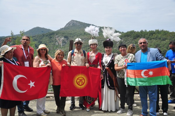 Tarihte kurulmuş 16 Türk devletinin bayraklarına yer verilen yürüyüşte konukların giydiği yöresel kıyafetler renkli görüntüler oluşturdu.