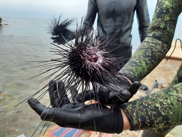 Ekip, 10 metre derinlikte zehirli iğneleri olduğu tespit edilen 34 deniz kestanesi topladı.