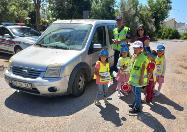 Jandarma ekipleri, öğrencilere trafik kuralları, kara yolunda yayaların doğru hareket tarzları, bisiklet ve motorlu bisiklet kullanırken dikkat edilecek hususlar, emniyet kemeri ve kask kullanımın önemi, okul servis araçlarında öğrencilerin harekat tarzı ve okul içinde ve dışında uyulması gereken kurallar konusunda uygulamalı eğitim yaptırıldı.