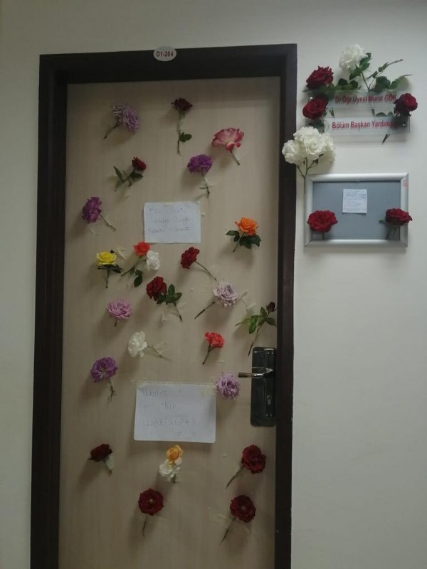Öte yandan, Gök'ün Fen Edebiyat Fakültesi binasındaki odasının kapısına da öğrenciler çiçekler bıraktı, duygularını anlatan notlar astı.