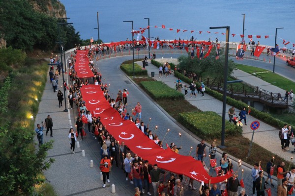 ANTALYA (AA) - Antalya'da 19 Mayıs Atatürk'ü Anma, Gençlik ve Spor Bayramı dolayısıyla fener alayı düzenlendi.