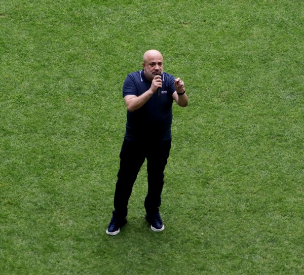 Sancak, Yeni Adana Stadı'nda oynanacak Adana Demirspor-Göztepe maçı öncesi saha içinde mikrofonu alarak stat ses sistemi aracılığıyla taraftarlara seslendi.