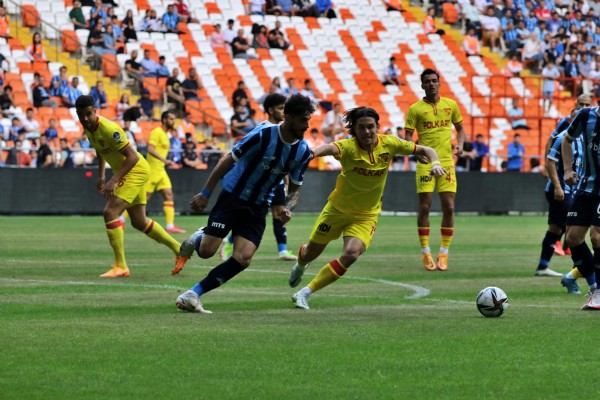 25. dakikada Adana Demirspor öne geçti. Kendi sahasından savunmanın arkasına atılan topla buluşan Vargas'ın ceza sahası içinde yerden ortası sonrası araya girmek isteyen Atakan Çankaya'nın ters vuruşunda, top Göztepe ağlarıyla buluştu: 1-0.
